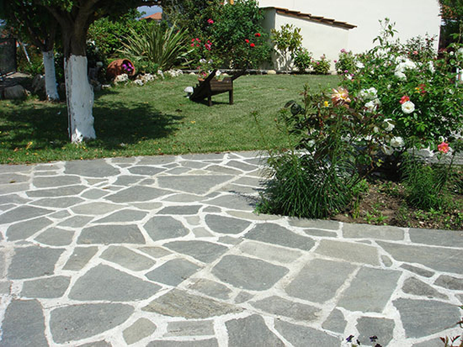 Harmaa liuskekivi pienemmille pihakokonaisuuksille.
