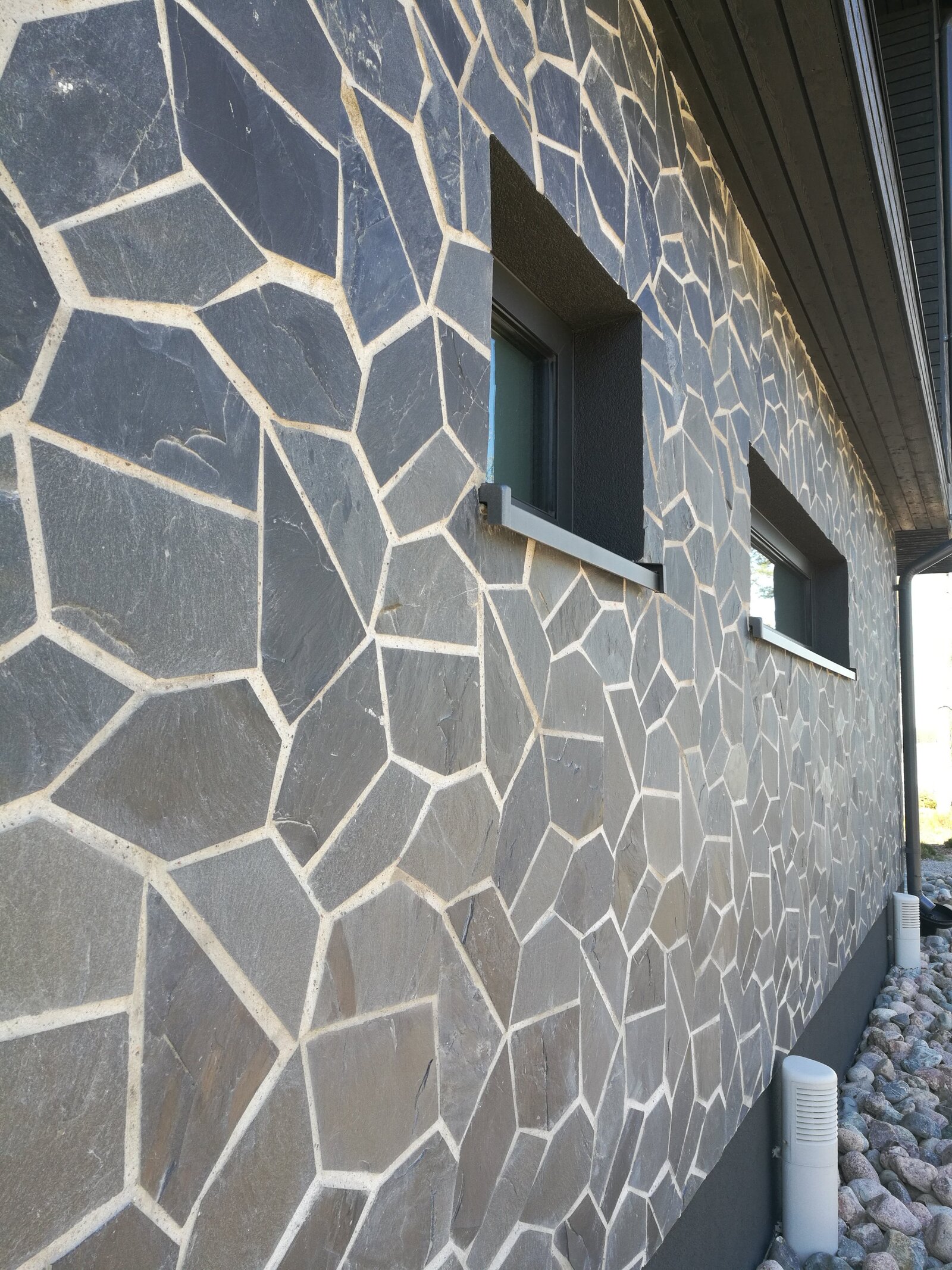 Verkotettu musta liuskekivi koostuu sahatuista kivenpalasista. Verkkoon on liimattu 7 palaa yhdelle arkille. Liuskekivet ovat valmiiksi sommiteltu muoviverkkoon ja eikä edes hinnalla pilattu kokonaisuus. Pieniin kohteisiin suosittelemme kuitenkin irtoliusketta verkon isokokoisuuden vuoksi.