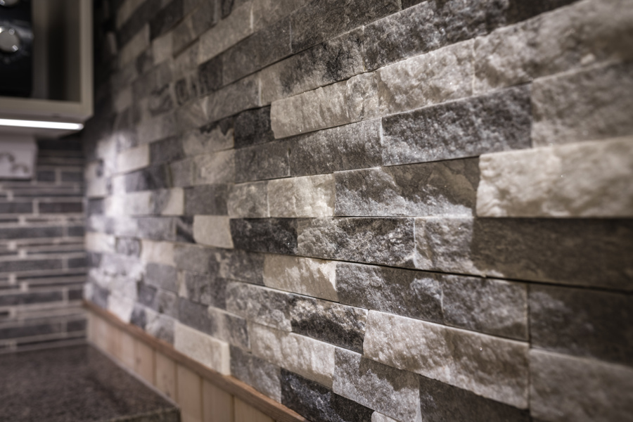 Shanghai Sumu on täydellinen valinta niin sähkökiukaan taustaksi, keittiön välitilojen verhoiluun kuin olohuoneen seinäpinnaksi. Sen ohut ja kevyt rakenne tekee siitä helpon asentaa, jopa suoraan EK-Gyprocin päälle. Sumu tuo tilaan pehmeän ja rauhallisen ilmeen, joka rentouttaa ja inspiroi.