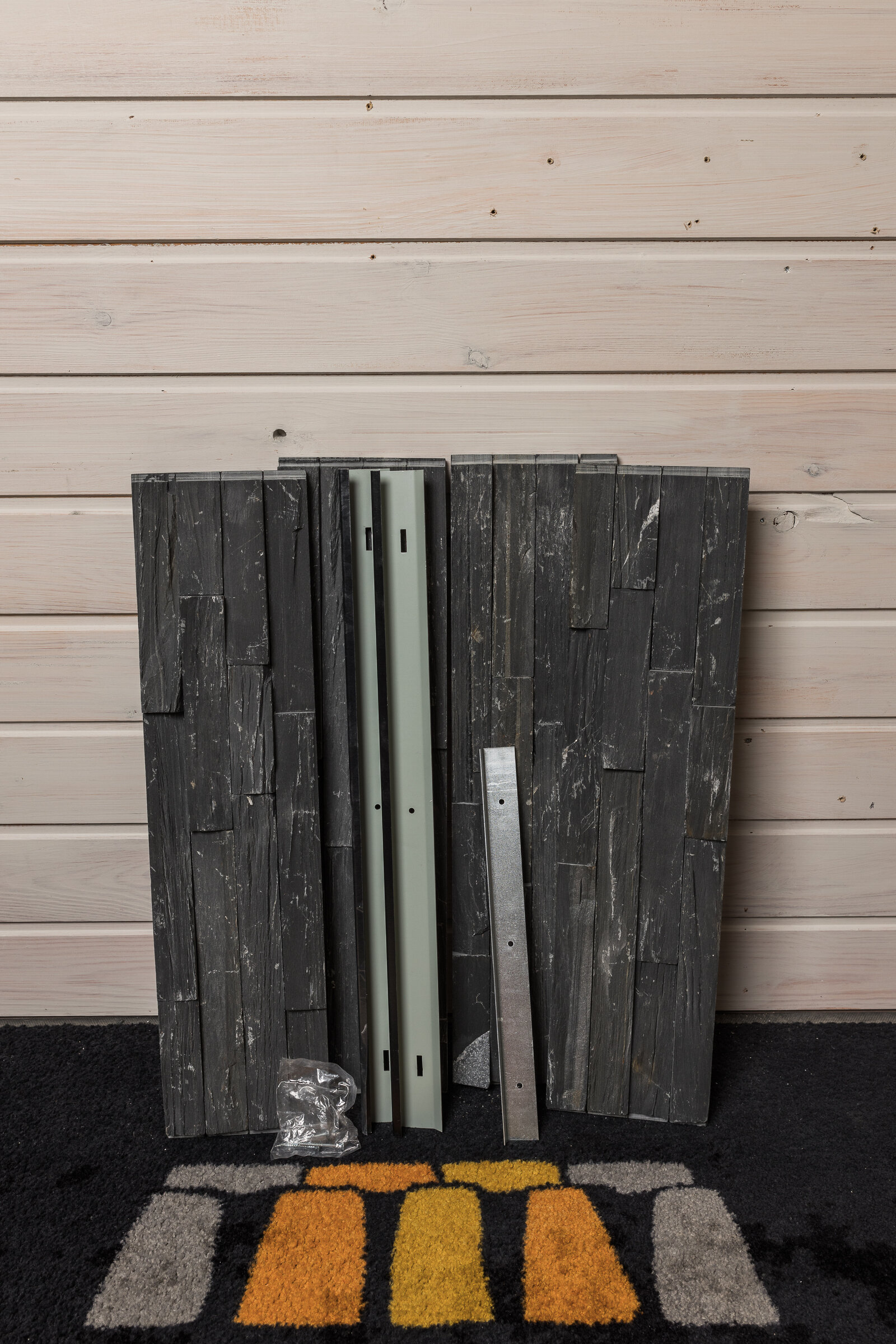 Tämä ruuvikiinnitteinen verhoilukivielementti on helppo asentaa! Yksi pakkaus sisältää n. 2-3 cm vahvat kivet 60x60 cm elementtiä varten. Kiinnitä sivukiskot seinään ja laske kivet paikoilleen. Valmis. Kaikki osat ovat ruuvikiinnitteisiä, ruuvit ja kiskot sisältyvät pakkaukseen. Kiinnitys voidaan tehdä suoraan esim. olemassa olevan paneeliseinän päälle, ilman purku- tai muuraustöitä. Kivielementin maksimikorkeus lasketaan niin, että katonrajaan jää muutama cm sekä lattianrajaan jää tyhjää mielellään 3-10cm jotta kivielementin tausta pääsee tuulettumaan.