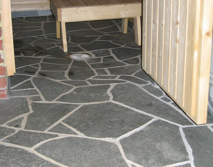 Liuskekivi, Altan Harmaa 1-2 cm. Paketti sis. 10 m2 liusketta, 3 skk Fescon Saneerauslaasti + 2 skk Fescon Korjauslaasti Mustanharmaa tai harmaa.