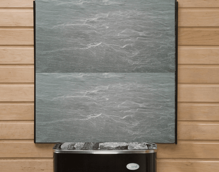 Verhoilukivielementin kiukaantausosa. Mukana tulee listat, ruuvit, poskikivet sekä tausta- että korotoslevyt kiuasta varten. Helppo asentaa!